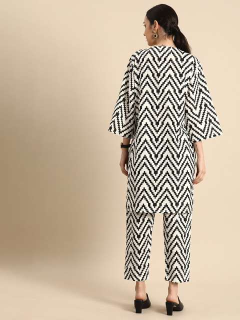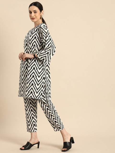 Anouk Women White Printed Pure Cotton Kurta with Trousers Prices