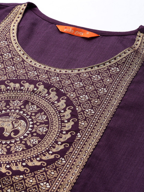 Indo Era Women Purple Yoke Design Kurta with Palazzos & With Dupatta Prices