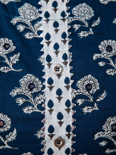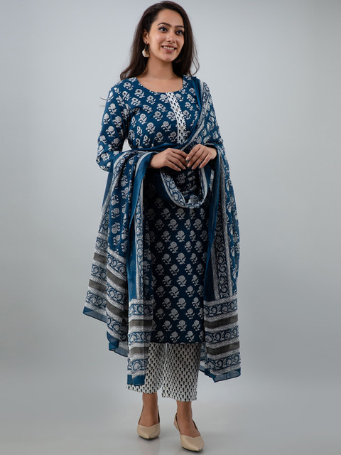 - At myntra.com you can purchase KALINI Women Blue Floral Printed Gotta Patti Pure Cotton Kurta with Trousers & With Dupatta for only ₹ 999