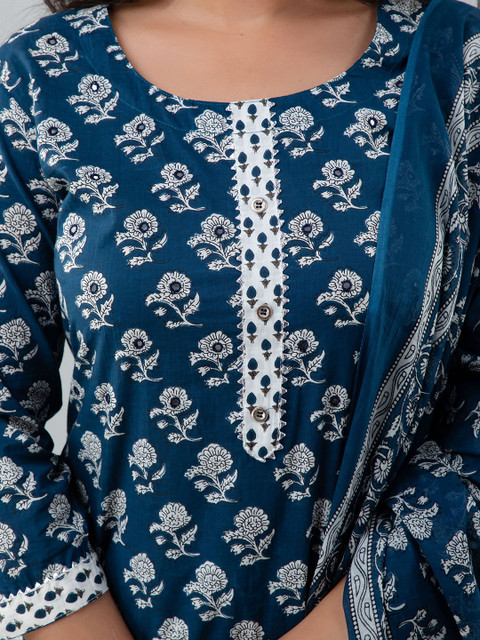 Specification: KALINI Women Blue Floral Printed Gotta Patti Pure Cotton Kurta with Trousers & With Dupatta
