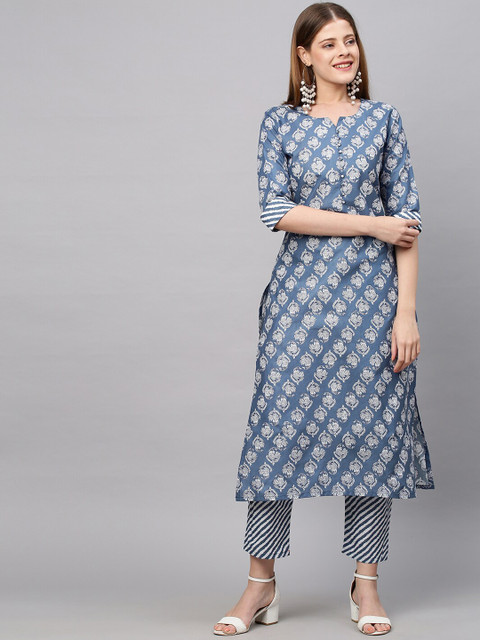 • At myntra.com you can purchase KALINI Women Blue Printed Straight Kurta with Trousers for only ₹ 3,199
