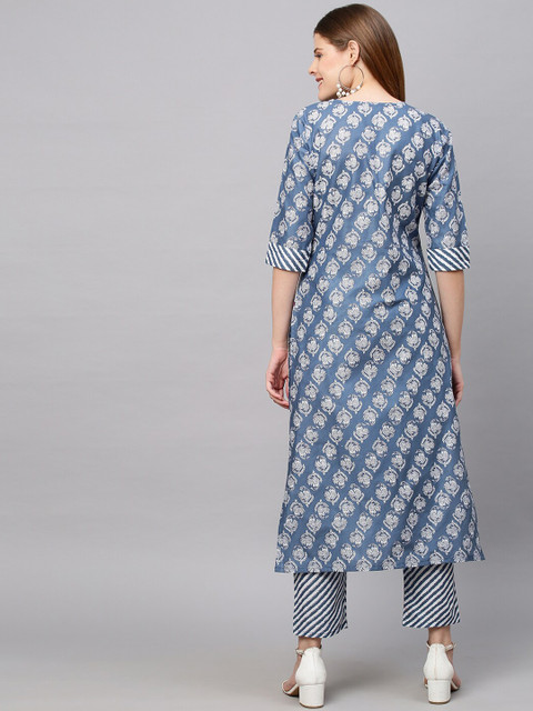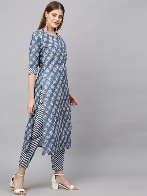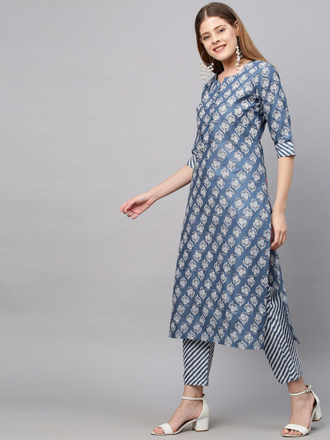KALINI Women Blue Printed Straight Kurta with Trousers Prices