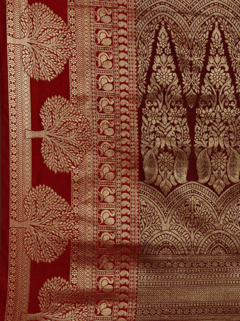 Specification: Mitera Green & Gold-Toned Woven Design Zari Silk Cotton Banarasi Saree
