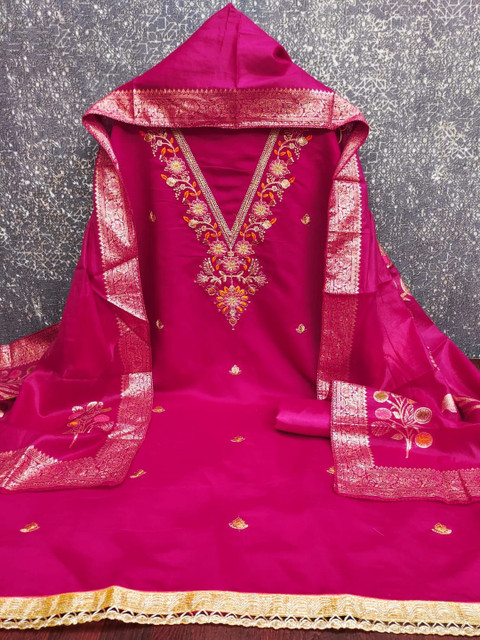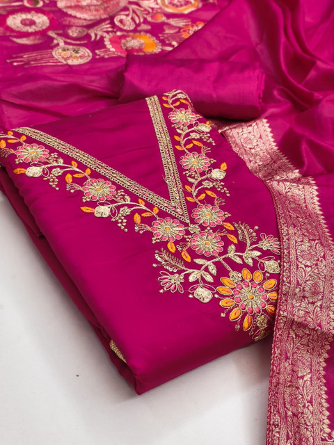 Fuchsia embroidered unstitched dress material