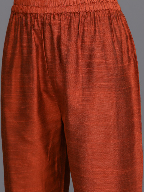 Specification: Varanga Women Maroon Embroidered Yoke Design Kurta with Trousers & Dupatta