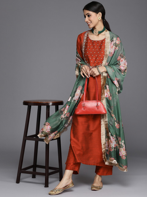 - At myntra.com you can purchase Varanga Women Maroon Embroidered Yoke Design Kurta with Trousers & Dupatta for only ₹ 1,515